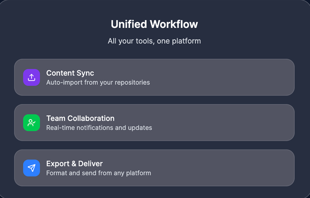 Collaborate seamlessly by assigning sections, tracking progress, and keeping SMEs aligned